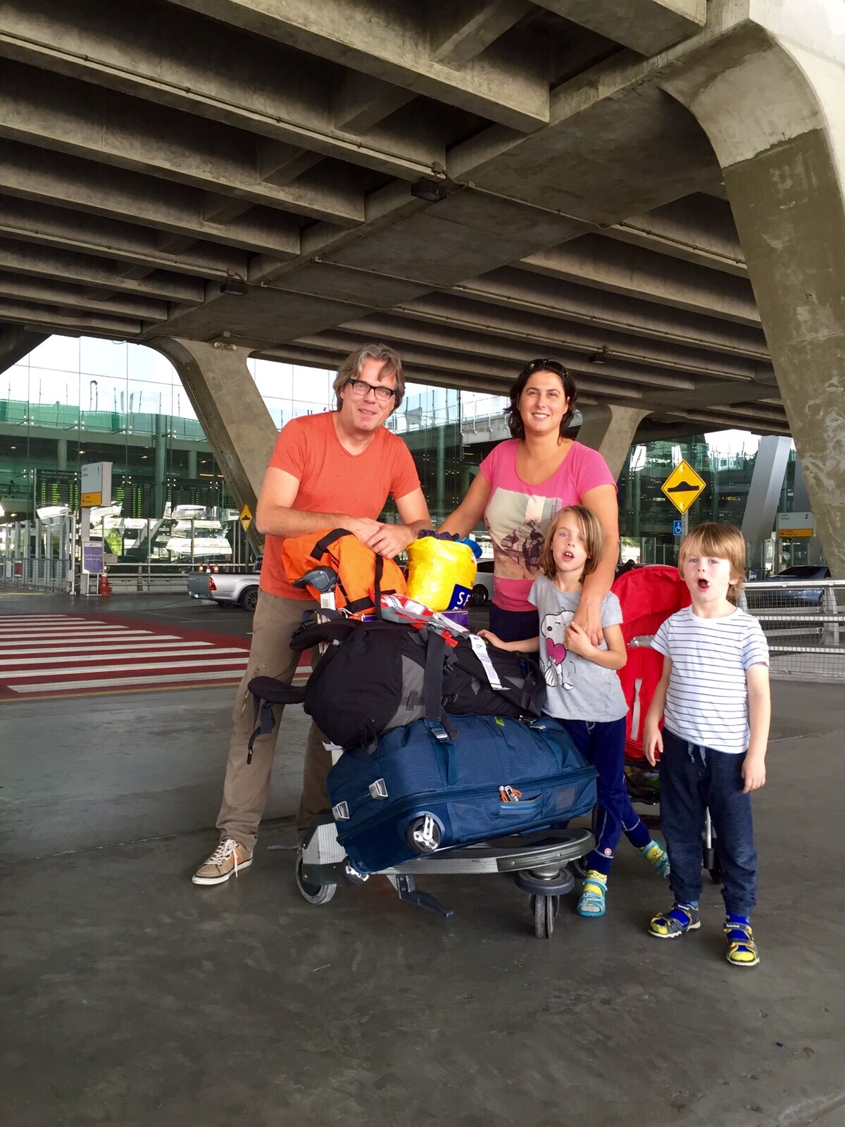 In Thailand krijgen mensen met kleine kindertjes altijd overal voorrang. Zouden ze in Nederland ook mogen invoeren. Nooit in de rij hoeven staan, altijd overal hulp en priority. Helaas voldoen onze kids daar vrees ik net niet meer aan gezien hun leeftijd… Toch hadden we geluk! Aangezien ik oververmoeide duuk heel tactisch droeg werden we uit de langste rij voor de immigratie ooit gehaald!! Halleluja. Dat is namelijk echt niet tof na zo’n reis. Of je nu kinderen bij je hebt of niet….