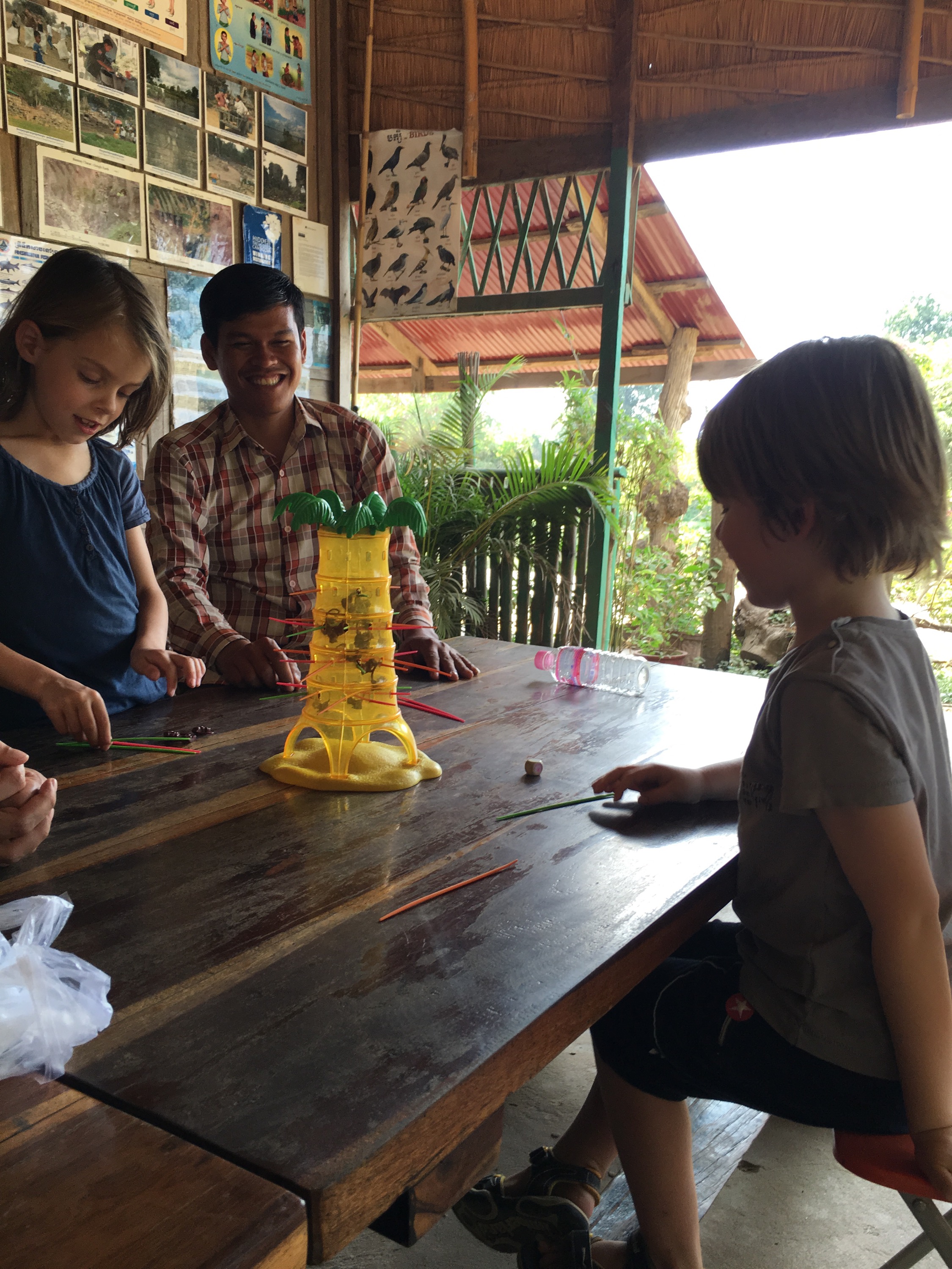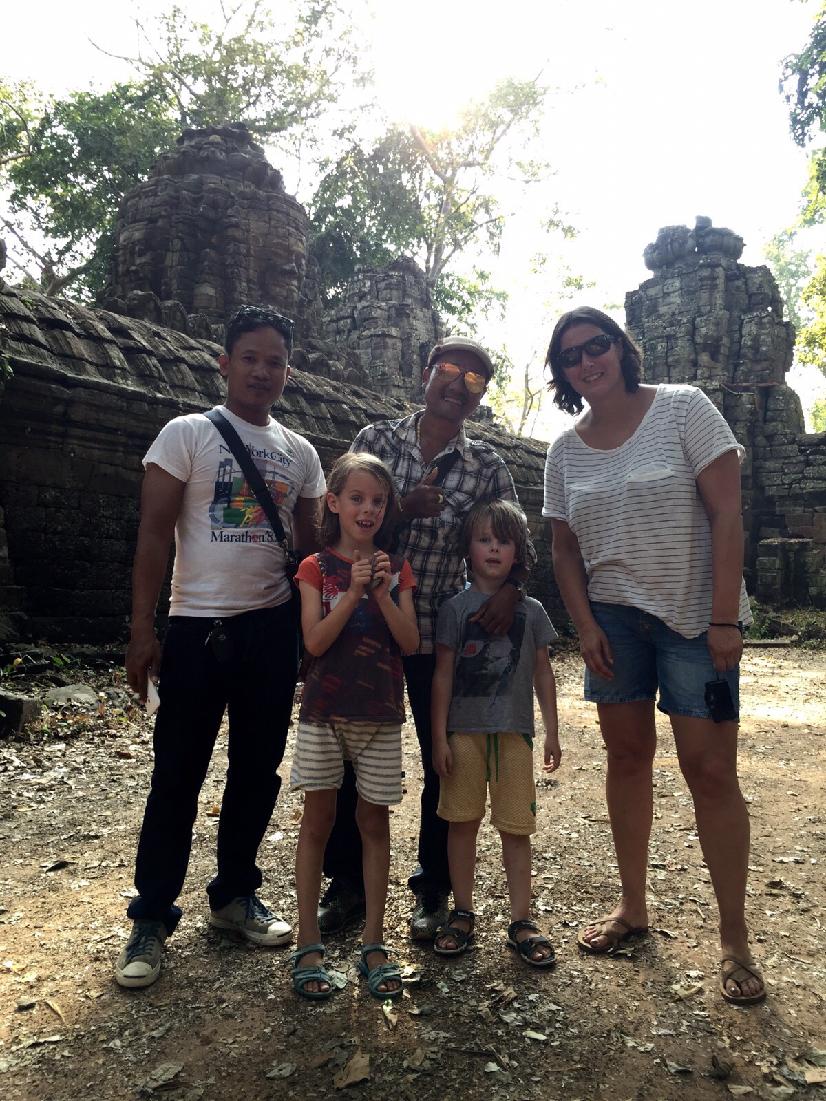 Wat een cultuurshock! Gisteren in onze homestay aangekomen in banteay chmar. Hier zijn wij de aapjes, en dan vooral de kinderen. Ze worden in hun benen en armen geknepen door vooral vrouwen terwijl ze hele verhalen khmer ratelen. Ook mogen wij hier op de foto met wildvreemden. De kinderen vinden het geweldig. Voor ons is het even wennen… In de verschroeiende hitte zonder iets van verkoeling of zelfs maar een douche. En dan heb ik het nog niet over al die vreselijke kriebelende en prikkende insectenbeestjes gehad….