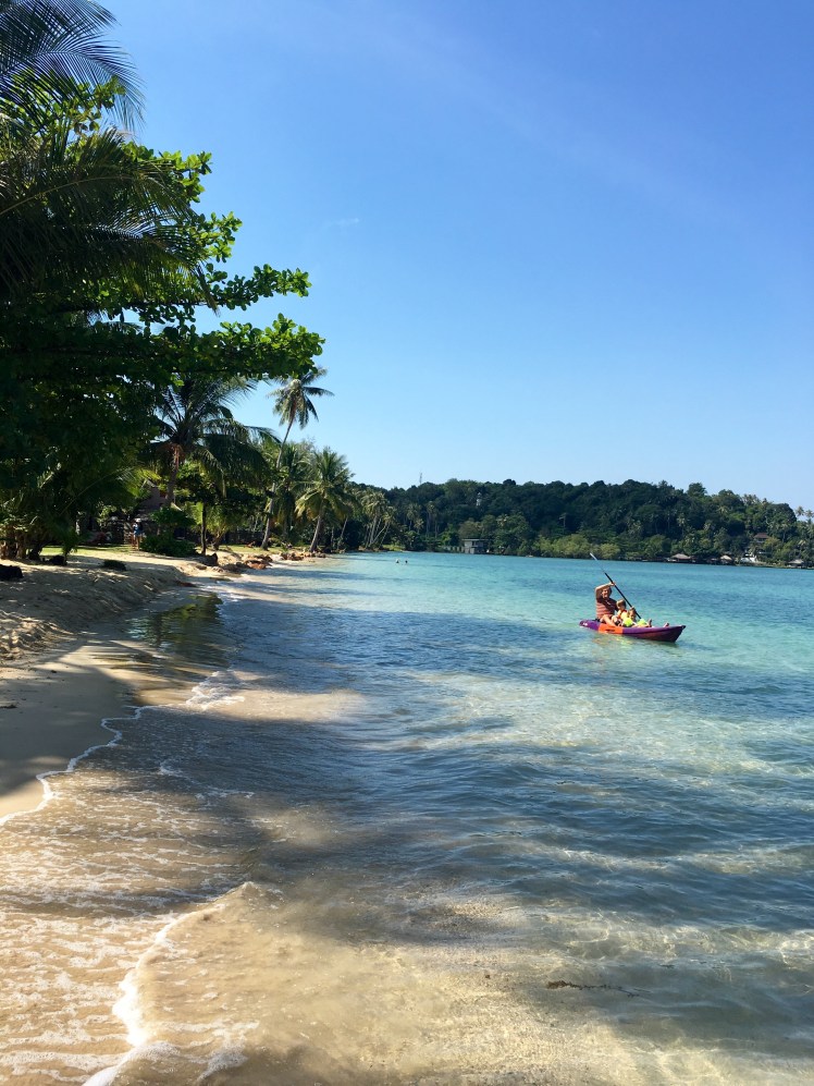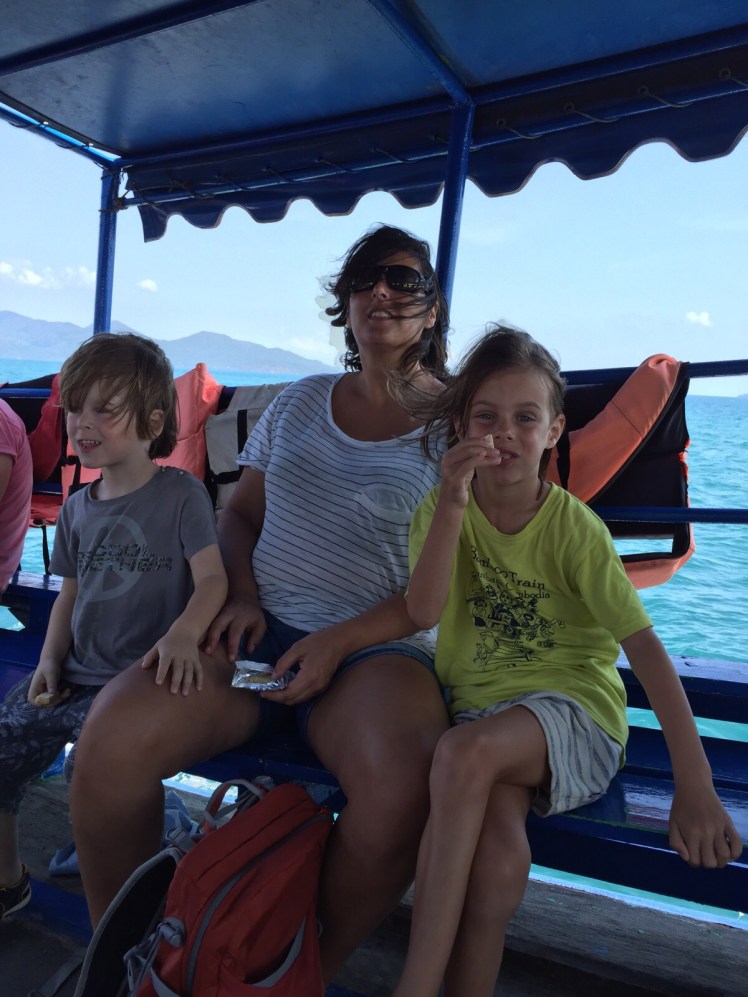 Gisteren met de boot naar onze laatste ‘echte’ bestemming, Ko Mak voor de terugreis begint. Het is weer voorbij gevlogen! De kapitein was een geval apart… Zo stoned als een garnaal, onder de piercings en een band vol dildo’s in alle soorten en maten om zijn middel. Gelukkig vielen de kinderen alleen de ringen door zijn tepels op….