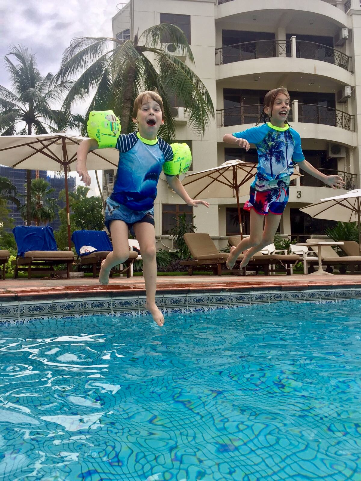 We zouden hier 4 nachten blijven maar we zijn zo moe en het hotel is zo kindvriendelijk dat we er maar 6 van hebben gemaakt. Vergane glorie op z’n best maar dan wel met speeltuin, zwembad, voetbalveld en aan de rivier. Buiten het centrum, dus in relatieve rust…. We zitten in een wijk vol met expats dus alles is gericht op kinderen. Restaurants a la de kers met speeltuin en kindermenu. Ideaal. Alleen beetje jammer van de westerse prijzen…
