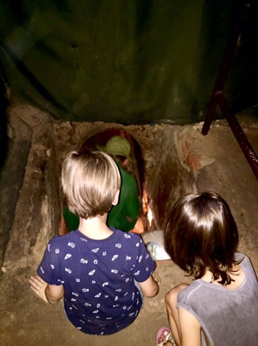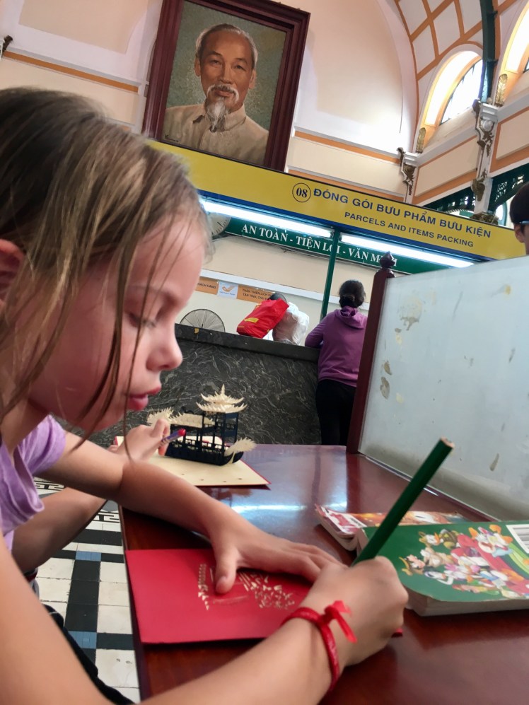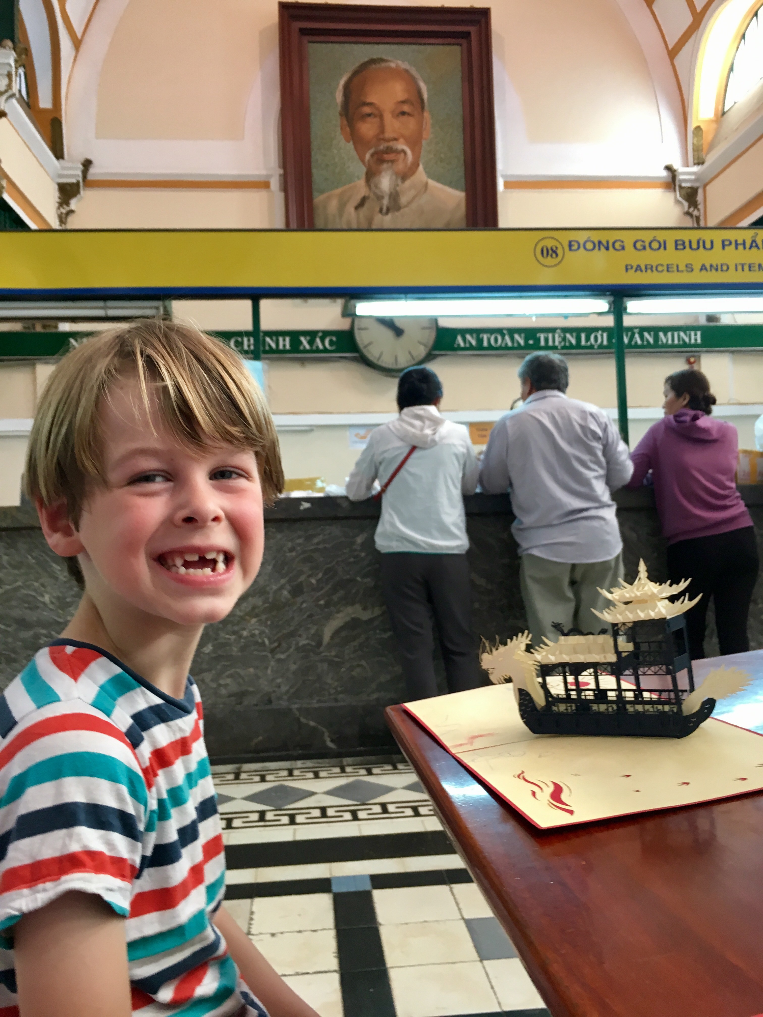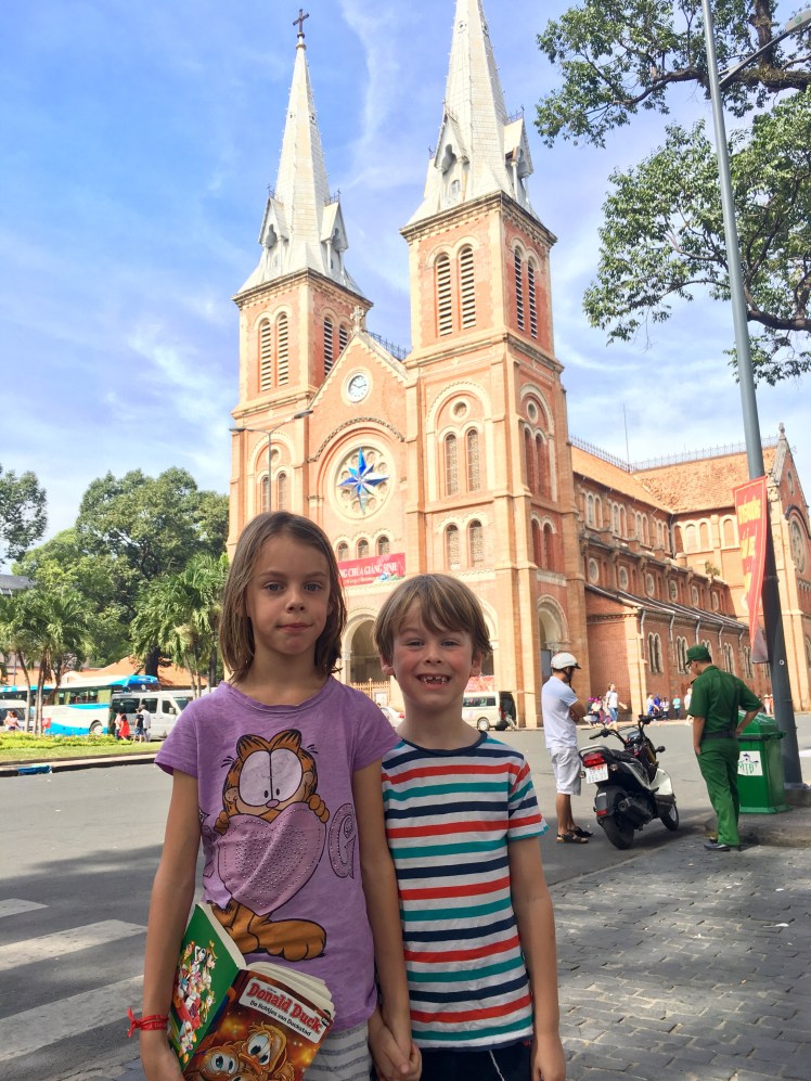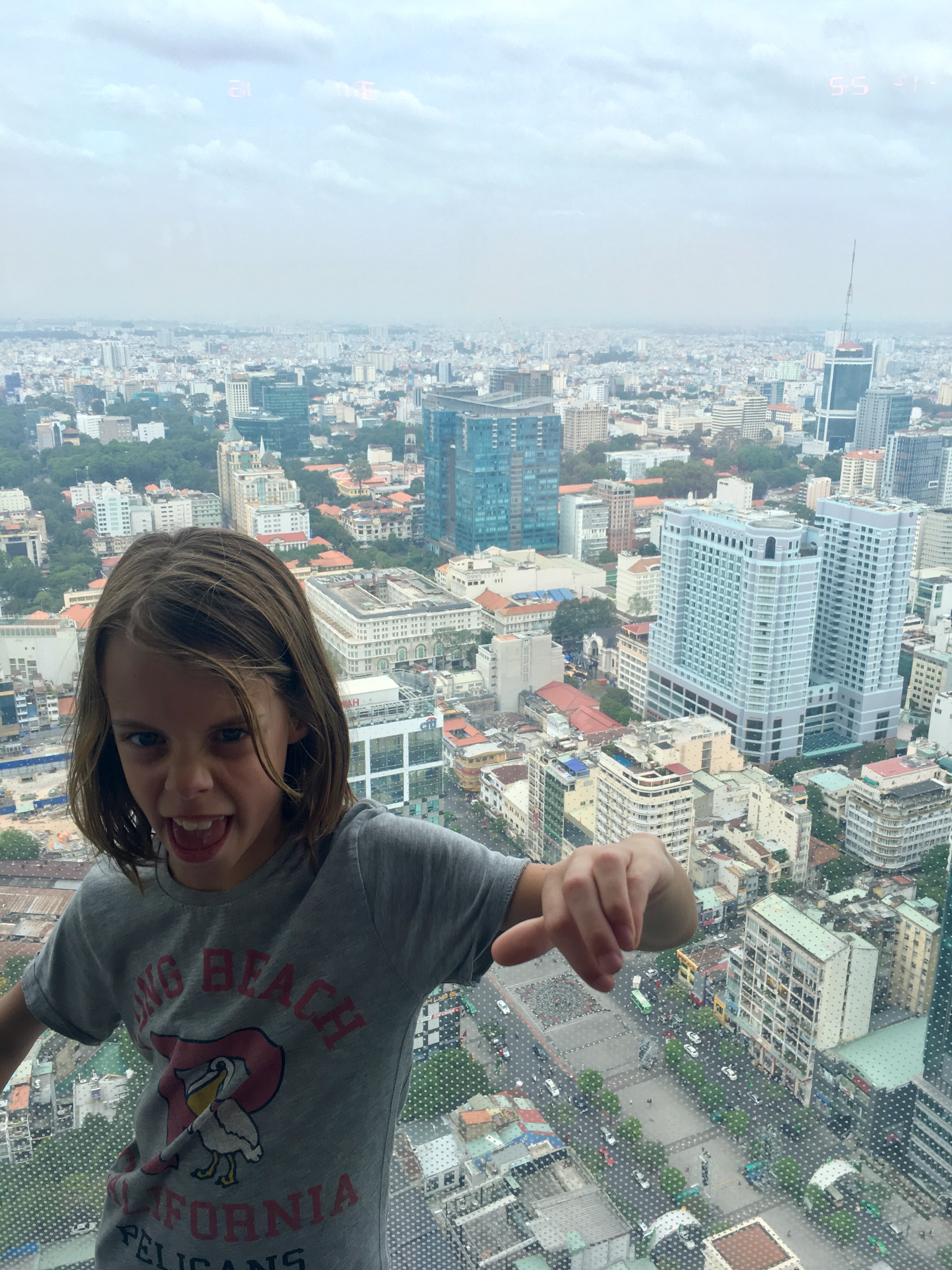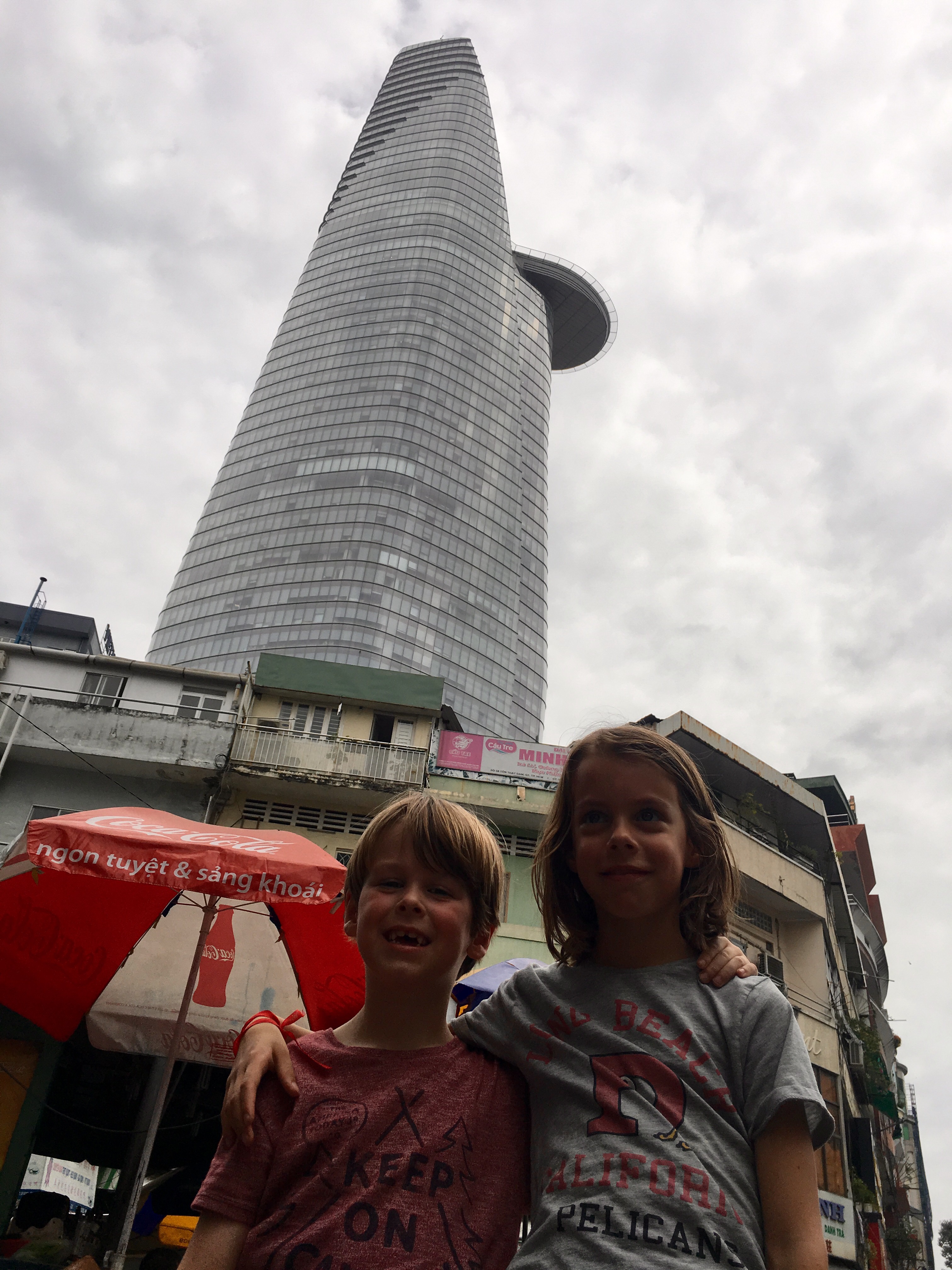 We hebben van alles en nog wat gedaan en werden daarbij achtervolgd door Vietnamese schoolklassen, zowel in het waterpark als het museum. Het museum bevatte allerlei gruwelijkheden over de Amerikaanse oorlog hier in vietnam. Verder nog naar een erg hoge toren geweest met supermooi uitzicht. Bij deze toren hebben we geposeerd voor de meest kitscherige foto ooit! Natuurlijk kon ook een bezoekje aan de tunnels van cu chi niet uitblijven. Weer allerlei nieuwe inspiratie opgedaan op het gebied van boobytraps (die Vietnamezen waren geniaal op een vrij gruwelijke manier…). Ook een bezoekje aan de water puppet show mocht niet ontbreken.