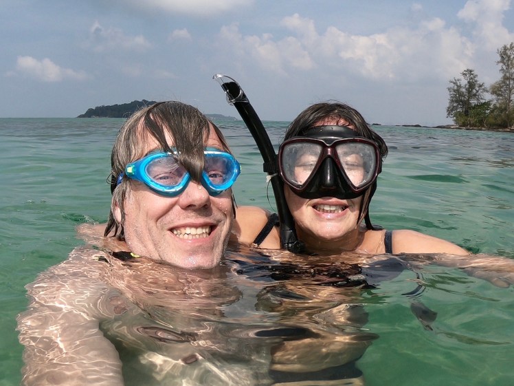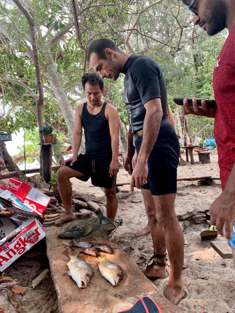 Over onze dagen op het Robinson-eiland (koh ta kiev) kan ik kort zijn. We hebben gezwommen. En in de hangmat gelegen. En gegeten. En dan vooral de vers gevangen vis van harpoen visser matis. Waarbij de gespieste stingray posthuum 2 levende visjes op de wereld zette, raar gezicht. Verder genoten van het heerlijke backpack/hippie sfeertje op ons verlaten standje.. Ons hutje was de laatste dus volop privacy met privé strand (en zandvlooien..). Privay was was ook nodig want het hutje was helemaal open… Zelfs de wc en douche :). Maar daar tegenover stond dan wel het geweldige uitzicht op zee en praktisch op het strand. Echt prachtig!!