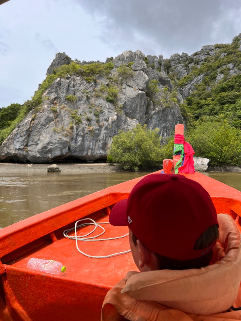 Maar eerst de laatste dag Dolphin Bay (Sam Rot Yoi). Eigenlijk wilde ik met een bootje naar een mooi strand varen maar de kinderen wilden liever de mangrove in al varend (zij kregen hun zin). Was een suf tochtje. Wel leuk waren de lopende vissen (die ergens naar onderweg waren evolutionair gezien).