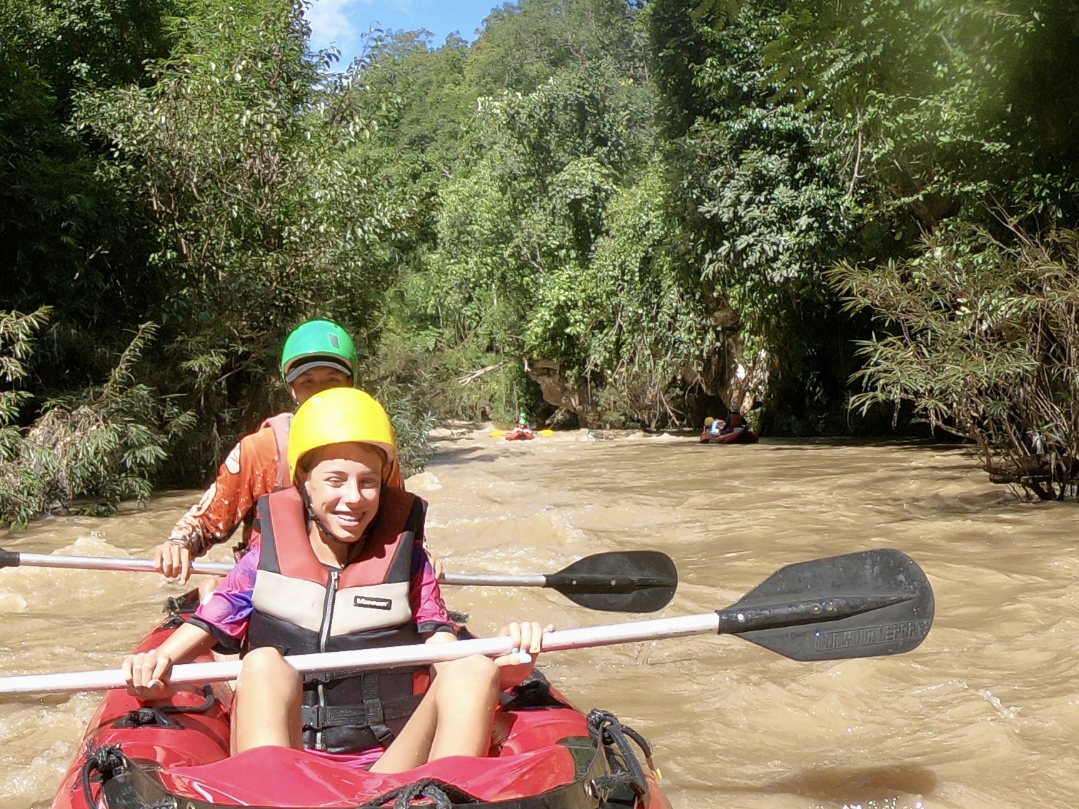 Na een paar dagen pai zijn we door gereden naar cave lodge in soppong. Meteen een kayak tocht gemaakt en besloten ons verblijf tot 1 nacht te beperken. Alles draait om grotten en dat is niet handig als de halve familie claustrofobisch is. Wel een prachtige omgeving!!