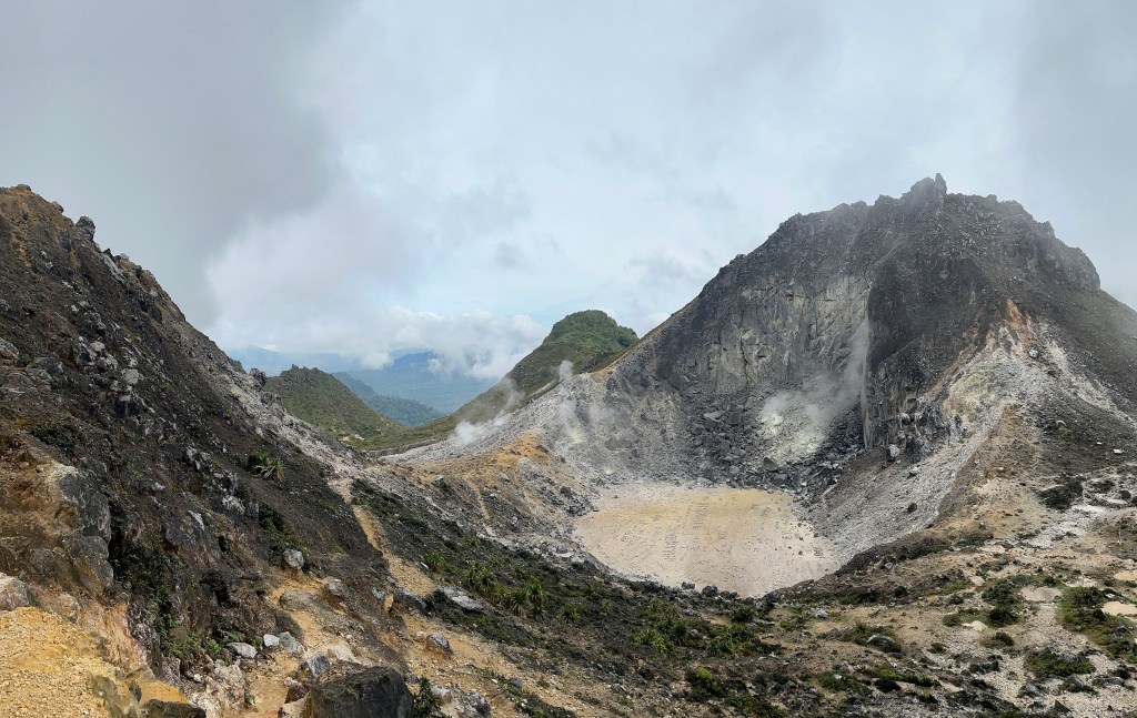 Gelukkig was duuk zijn overgeven beperkt tot 1 dag. Wel was hij nog wat slapjes. Na het vertrek in Lake toba zijn we naar berastagi gereisd. Pas dan merk je hoe enorm groot her meer is. Na 2,5 rijden hadden we namelijk nog steeds uitzicht op het meer…