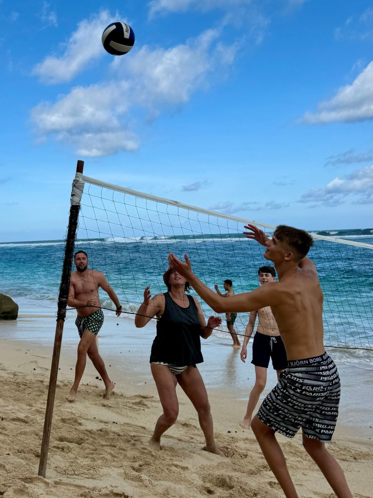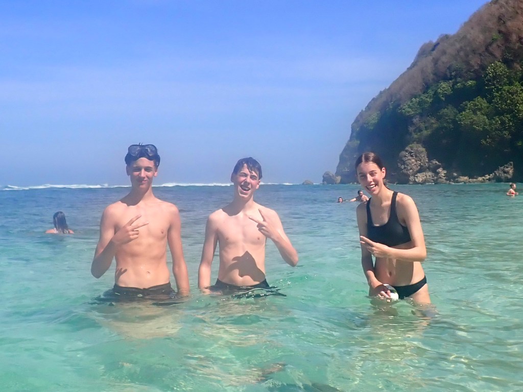 Na ons vertrek uit Ubud hebben we weer lekker file gereden naar uluwatu. Het verkeer hier is echt niet normaal zo druk… In uluwatu zijn we maar 1 volle dag. Zaterdag vliegen we alweer door naar Makassar (Sulawesi). Een lagere school vriendje van joleine is ook in Bali dus daar hebben we een gezellige dag in een beach club mee doorgebracht. Tussendoor ook nog pizza gegeten in een disco palace en duuk heeft surfles gehad.
