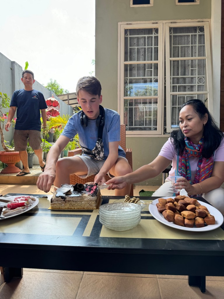 Zondag is duuk z’n verjaardag. We zijn de dag rustig gestart met een taartje en snacks bij Adil thuis (dat is de man bij wie we een aantal trajecten in Sulawesi hebben geboekt). Echt heel leuk dat hij dat geregeld heeft voor duuk!Daarna door naar Rammang rammang: een prachtig natuurgebied op een uurtje rijden van Makassar. Ook hier heeft Adil ons heel fijn begeleidt! En hier is een uur rijden dus verder dan de 6 kilometers in Bali.. Bij de foodcourt s avonds bliefde de jarig job niks dus we hebben maar een grabje van de kfc laten komen.. Maandag vliegen we door naar luwuk. Voorlopig even de laatste binnenlandse vlucht. Op het vliegveld bleek dat we helemaal geen tassen konden inchecken dus we vliegen met alleen handbagage weer. De security check ging probleemloos, die vloeistoffenmaffia is alleen iets Europees. Benieuwd of ze ons volle tassen bij de gate ook accepteren…
