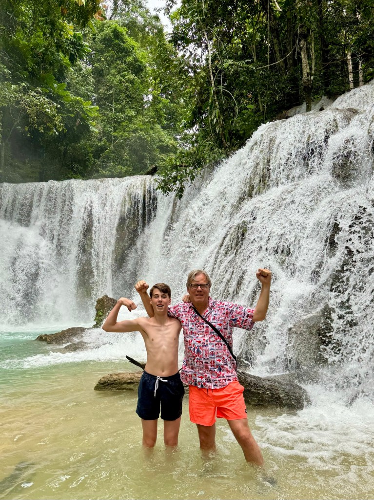 Na een vroege ochtendvlucht zijn we de 15e aangekomen in luwuk. We zitten in en beetje vaag hotel aan de rand van de stad. Het voelt hier erg doods en het eten is voor het eerst deze vakantie gewoon echt goor. Toen we ‘s avonds wilden ontsnappen was het onmogelijk een grab te boeken en ook de driver van eerder op de dag kon niet. Dus tsja dan zit je weer vast met het eten… Wel zijn we na aankomst naar een waterval geweest. Echt bizar wel hoe, als je 5 minuten uit de stad rijdt, je meteen in de jungle zit.