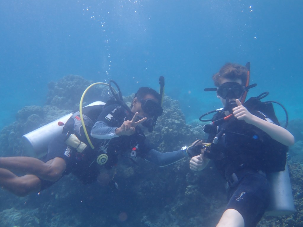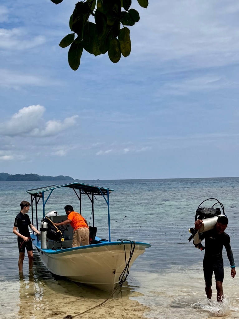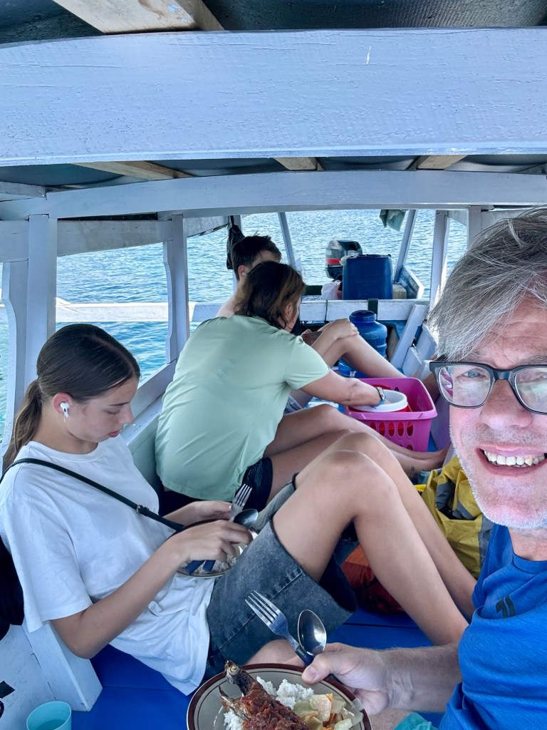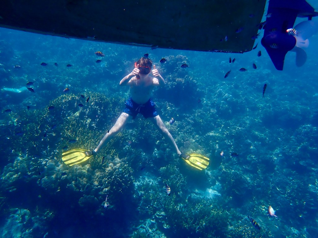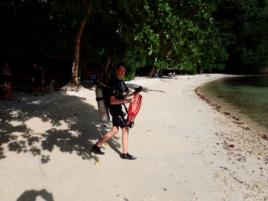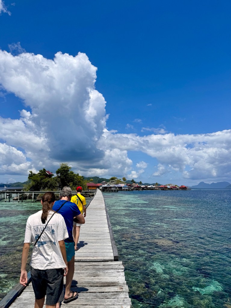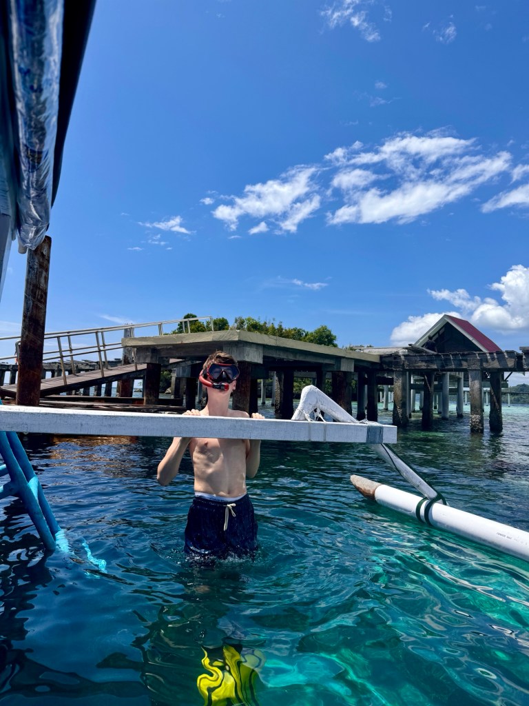 We hebben onze dagen grotendeels met relaxen ingevuld. Wel heeft duuk nog een 2 try dives gedaan. Die in de kerstvakantie ging namelijk niet goed ivm een probleem met z’n oren. Hij wil z’n padi graag halen maar daar is nu niet meer genoeg tijd voor. Ook hebben we een boottocht gemaakt naar malenge, dat is een eiland verderop waar de Bajo-mensen wonen. De Bajo zijn zeenomaden zonder paspoort en woonplaats. Ook hier was het weer prachtig snorkelen. En ze hebben de langste brug ter wereld die 2 dorpen met elkaar verbindt.