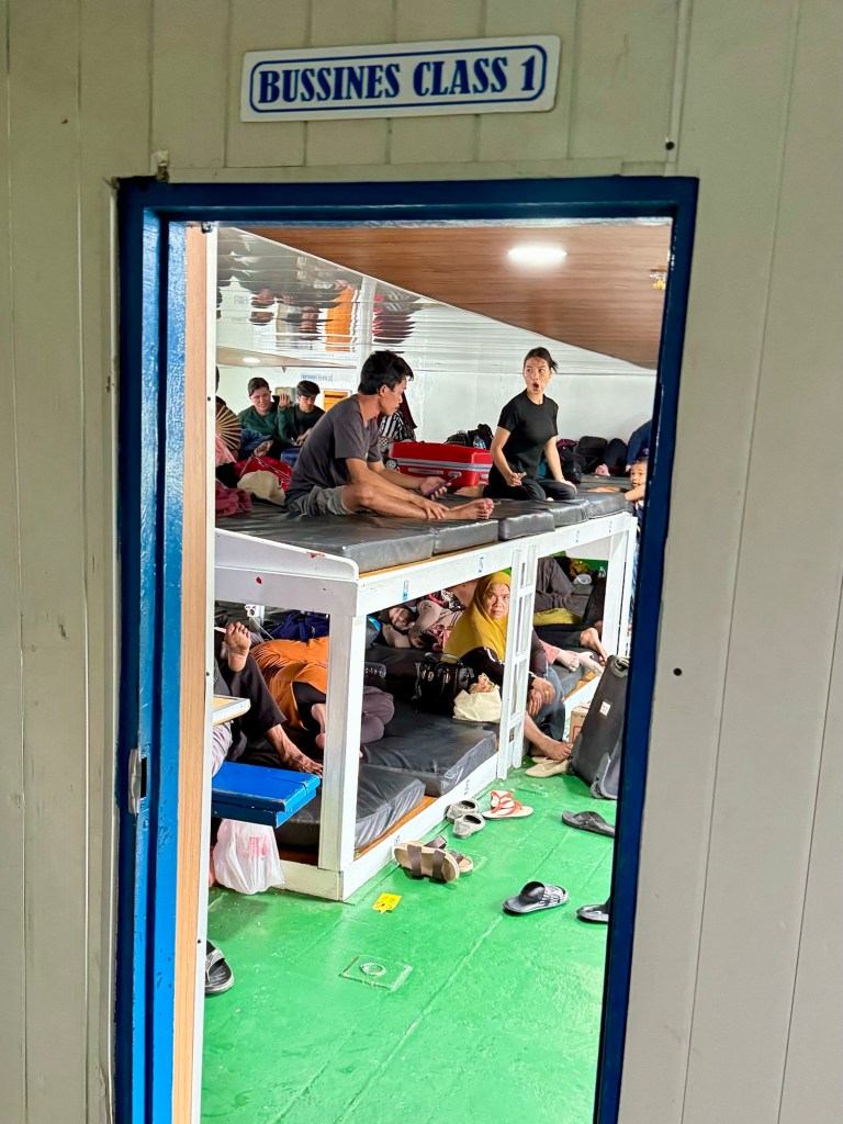 De overtocht naar gorontalo staat op het punt te beginnen. We hebben gelukkig de cabins. Benieuwd hoe ruw het wordt want we horen wel wat spookverhalen…. De ferry was een beetje een surrealistische ervaring. Harde muziek. Veel gepraat. Gedoe om de cabins. Als je heen cabin hebt dan lig je in een slaapzaal lepeltje-lepeltje op stapelbed-matrasjes.
