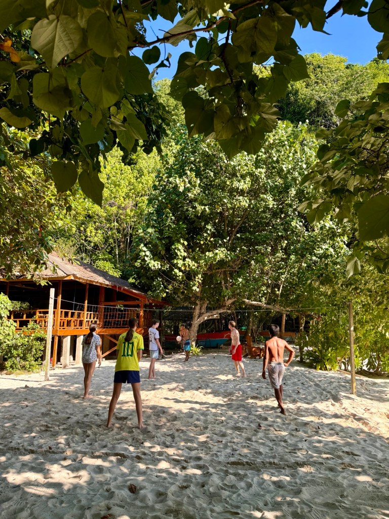 Waarom we hier dan naar toe willen vraag je je misschien af… Kijk de foto’s! Alles is prachtig! Van de vissen tot de zeesterren. Het koraal. De azuurblauwe zee. De zonsondergangen. De vogels. De vleermuizen. Beetje volleyballen. De enorme spinnen die gedood worden door een wesp (we dachten dat de spin zou winnen).. De togians zijn echt een topbestemming!! Zo prachtig en zo nog niet ontwikkeld.