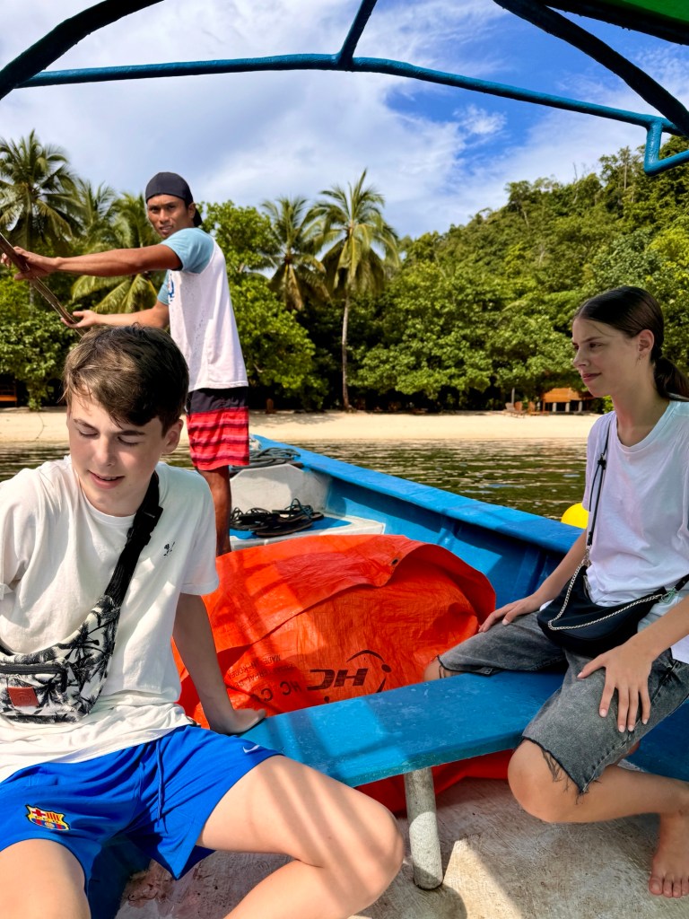 Voor wie het zich afvraagt. De kinderen hebben ze er redelijk doorheen geslagen. Ze geven beiden aan hier wel terug te willen komen. Stephan ook. Grappig, want vantevoren werd over deze bestemming het meeste geklaagd. Wel moesten ze iedere avond even internet snuiven met de kano… Het resort organiseerde ook bijna iedere avond een bootje naar de zendmast. Die zat dan vol met alle pubers.