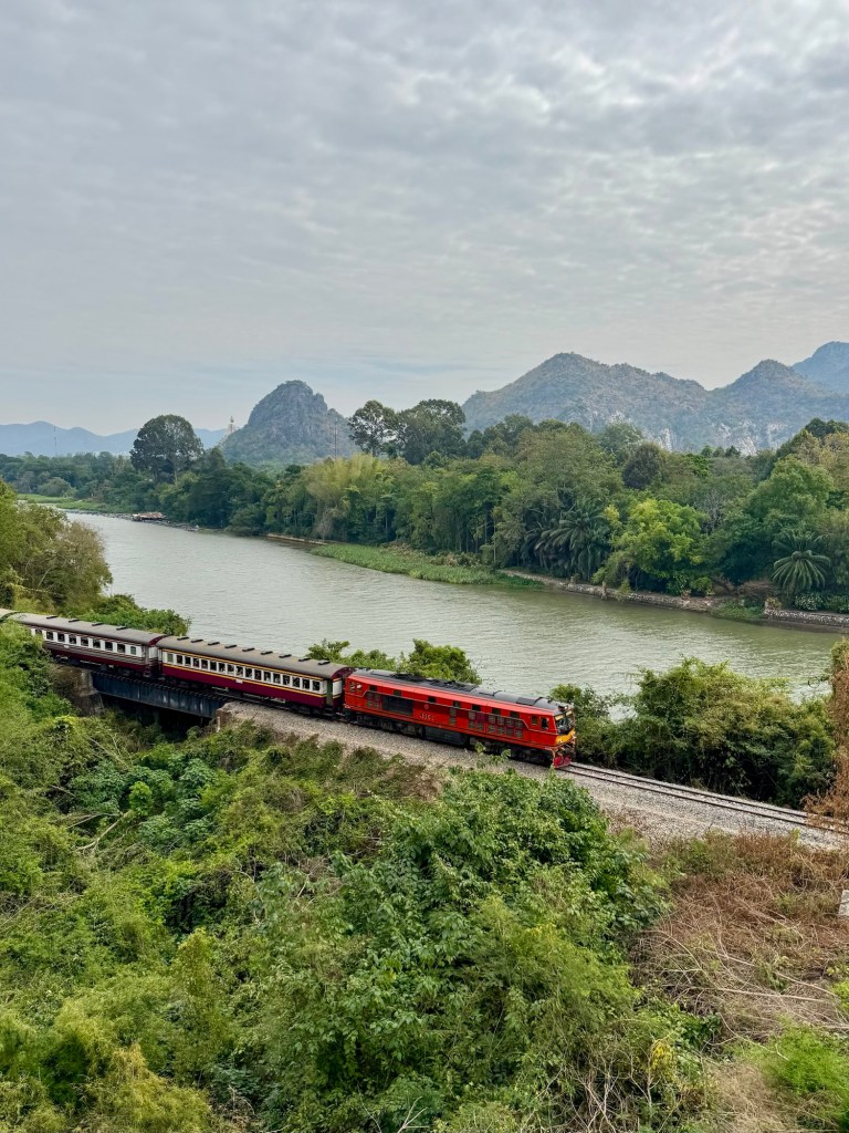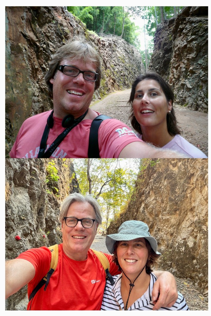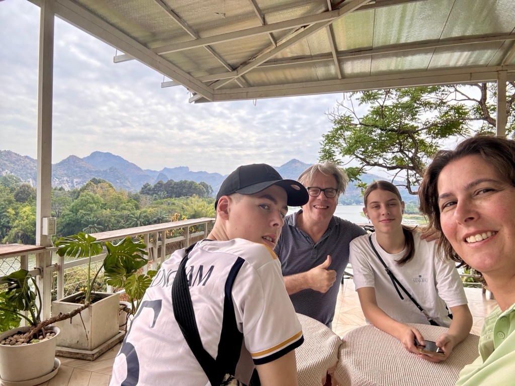Na weer een hele lange en vermoeiende reis aangekomen in ons hotel in kanchanaburi. De reis begon de dag op vertrek al met de wekker om 5 uur (maar we waren toen al uren wakker…..) en eindigde met een rit van 3 uur met de huurauto. Dat laastst stuk was enorm afzien. En ook nu weer lekker aan de jetlag. Ik was de dag van aankomst zo moe dat in zelfs in het restaurant tijdens het eten in slaap viel. Gewoon zittend.