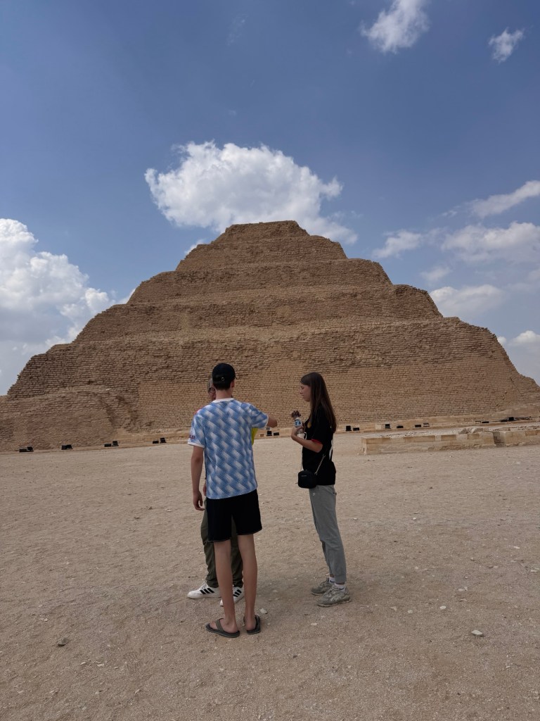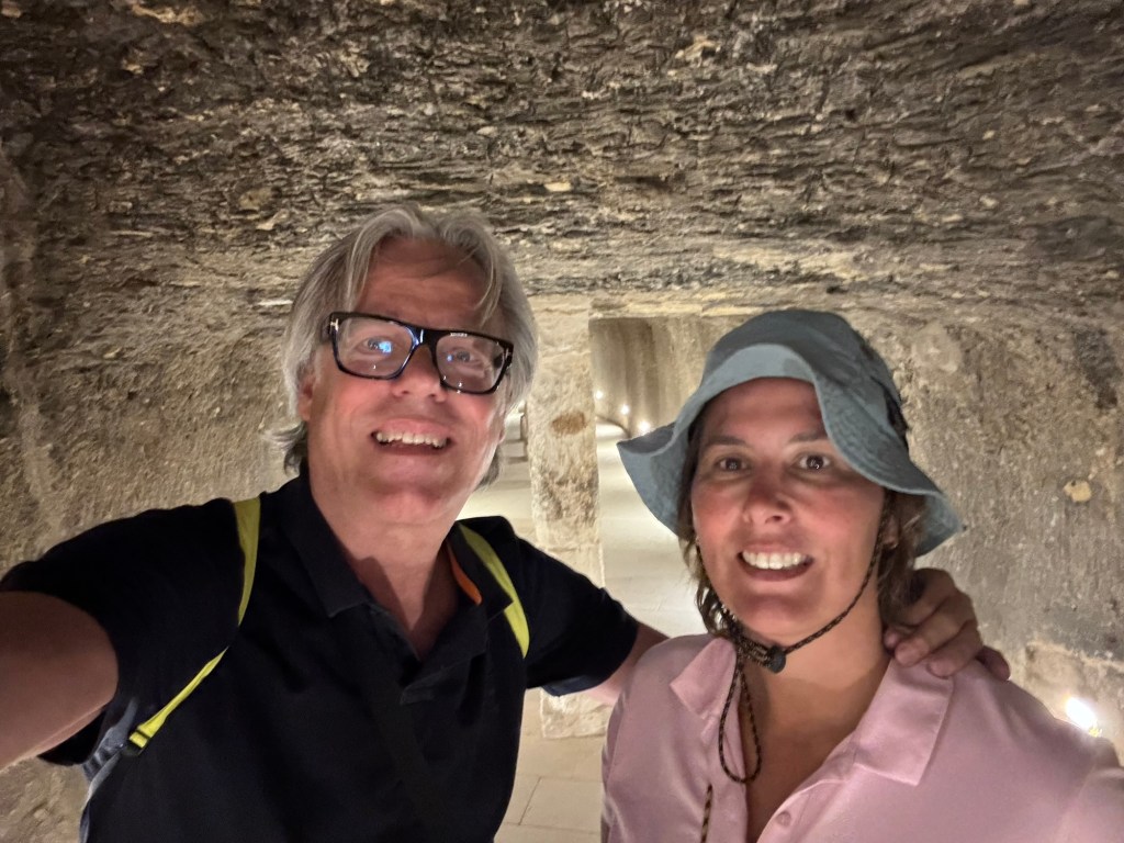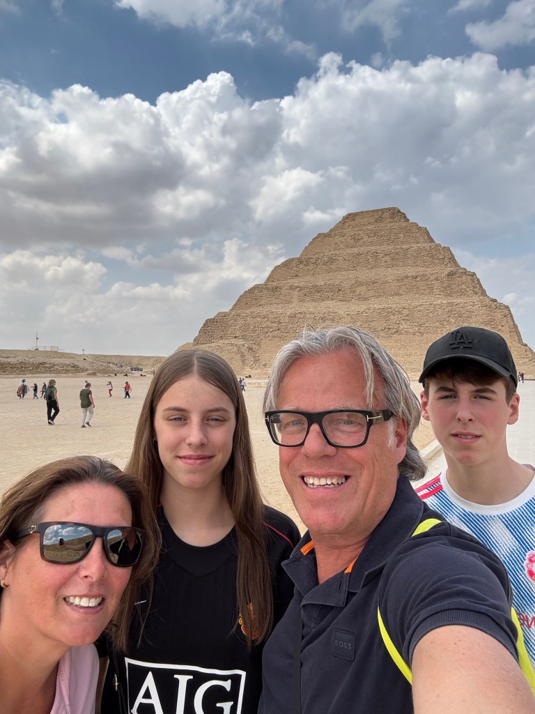 De laatste dag begonnen we weer pas rond de lunch met een bezoek aan saqqara. Dit zijn piramides die minder bezocht worden en waar je heel gaaf naar binnen kan. Helaas was er miscommunicatie met de chauffeur en ander vaag gedoe en daardoor een te duur ticket gekocht en te weinig gezien. De lunch verliep ook niet zoals gepland. Geen menukaart, alles onduidelijk. Afgesproken wat we wilden eten en voor welk bedrag. Maar je raadt het al.. Toch weer meer moeten betalen. Daarna afgesloten met een dinner cruise op de Nijl en dan morgen weer naar huis. Helaas hebben joleine en duuk toch wat last van hun buik gekregen dus de loperamide kwam weer van pas. Grappig dat we pas op de laatste dag tegen wat gedoetjes aanlopen die we eigenlijk continue hadden verwacht..