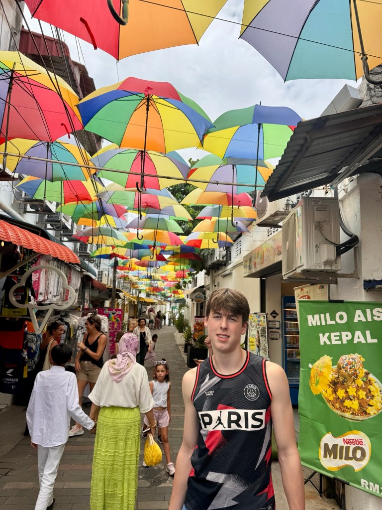 Duuk en ik vlogen zondag met z’n 2-en via Jeddah naar Kuala Lumpur. Vanaf volgende week zondag zijn ook Stephan en Joleine hier voor onze trip naar Flores. Maar nu eerst dus een paar dagen met alleen duuk op pad. Op zich een prima vlucht. En na een nachtje in suf hotel in kl zijn we met de trein en taxi doorgereisd naar een luxe hotel in Penang. Ik heb het hotel gekozen rekening houdend met Duuk zijn enige eis dat hij lekker kon blijven trainen. Ja dat is inmiddels prio 1 in zijn leven. Eiwitten en gewichten.