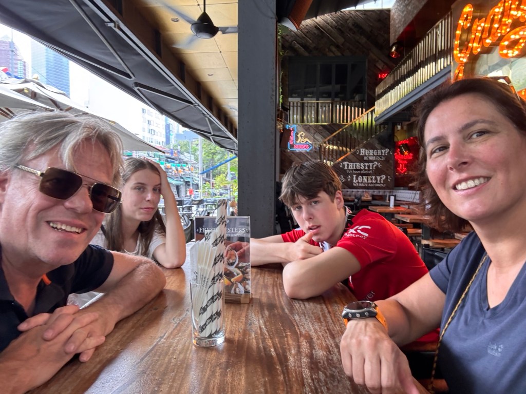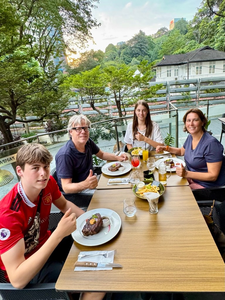 Op Duuk zijn verjaardag om 10u ‘s ochtends kwamen Stephan en joleine na een vreselijk reis eindelijk aan in ons appartement in Kuala Lumpur. Helemaal gesloopt natuurlijk!! Op ons tandvlees zijn we de eerste dag doorgekomen. Ook de nieuwe terugvlucht voor ons 4-en geboekt. Al vliegen Stephan en Duuk dus een weekje eerder terug.