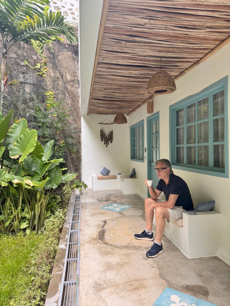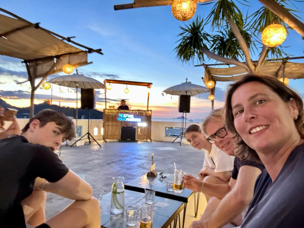 De trip met z’n 4en de komende weken kent een strak schema dus we moesten een dag later alweer door naar Flores. Ook nu had de vlucht fink vertraging maar omdat we dit al een avond ervoor wisten konden we s ochtends rustig aandoen. Ontbijt bij appartement was op verdieping 48 en je kon ook naar buiten. Dat was even onverwacht prachtig. Ook op vliegveld Labuan Baja weer een klein akkefietje omdat Stephan een tas in vliegtuig had laten liggen.. Uiteindelijk waren we half 6 in hotel in Labuan Bajo. Net op tijd voor de sun set en live muziek.