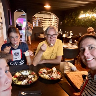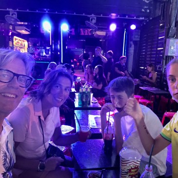 Toch volgens planning naar phuket gevlogen. Duuk had het zwaar maar heeft het overleefd. We hadden een uitklapkruk meegenomen en de bagage zo ingepakt dat hij op de kar op de tas kon zitten. Daarna de huurauto opgehaald en naar het hysterische kindvriendelijke hotel gereden. Phuket (en het hotel) was een kadotje voor de kinderen … More Phuket